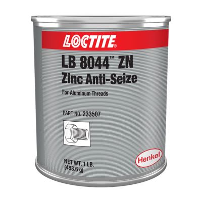 LOCTITE® LB 8044 is a dull silver colored smooth, homogeneous paste of zinc dust and petrolatum. It prevents seizing during assembly or disassembly of threaded or unthreaded metals joints, particularly if these metals joints involve aluminum or aluminum alloys. This product is typically used in applications with an operating range of -29 °C to 398 °C (-20°F to 748°F).