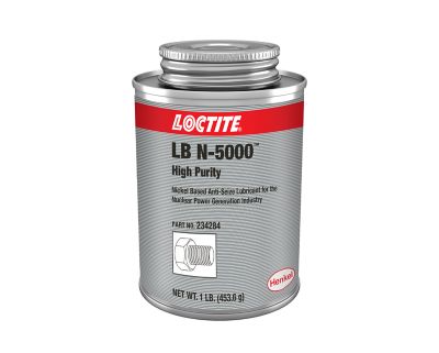 LOCTITE® LB N-5000 is a silver-colored, nickel-based anti-seize lubricant paste of the highest purity. It has the lowest practical levels of halogens, sulfur and heavy metals, including copper. Typical applications include locations where stainless steel fasteners are used. This product is typically used in applications with an operating range of -29 °C to 1315 °C (-20.2 °F to 2399 °F).