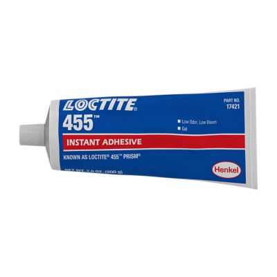 When vapor control is difficult, LOCTITE® 455 general purpose instant adhesive gel is ideal. It has low odor and low blooming properties, and its gel consistency prevents adhesive flow even on vertical surfaces. Perfect for metals, plastics and elastomers.