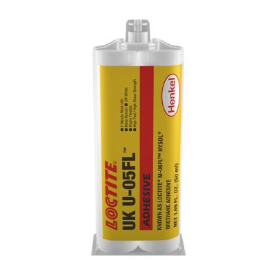 LOCTITE® UK U-05FL is an off-white, 2-part, medium viscosity, industrial-grade polyisocyanate urethane adhesive that works on a variety of materials, including metals, plastics, glass, and wood. It cures at room temperature to form a highly flexible bond line, providing excellent peel and shear strength. It can also be used for potting and encapsulating strain- and heat-sensitive electronic components.