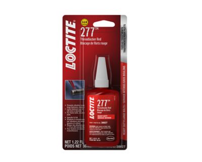 LOCTITE® 277 is a red, high strength, high-viscosity threadlocking adhesive especially suitable for large bolts and studs greater than 25 mm (1"). Fluoresces to allow monitoring. Disassembly with heat possible.