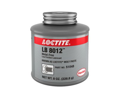 LOCTITE® LB 8012 est un lubrifiant antigrippant noir sans charge métallique prévu pour protéger les assemblages pendant les périodes de rodage. Le produit est formulé pour réduire la friction sur les fixations filetées telles que les boulons, écrous et goujons, et il est généralement utilisé pour des applications avec une plage de températures de fonctionnement allant de -29°C à 400°C (-20°F à 752°F) . Il reste en place en résistant à la chaleur, aux charges et aux vibrations pour garantir un démontage sans problème. LOCTITE LB 8012 a un grade NLGI de 1 et contient 65 % de disulfure de molybdène (MoS₂) pour une lubrification optimale.