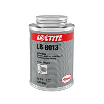 LOCTITE® LB 8013 est un lubrifiant antigrippant gris foncé, sans charge métallique et avec du graphite et de l’oxyde de calcium, conçu pour protéger l’acier, l’acier inoxydable et d'autres alliages spécifiques dans des environnements nécessitant une résistance aux températures élevées. Le produit a une homologation PMUC et démontre une résistance supérieure aux produits chimiques et aux températures élevées, jusqu’à 1315°C (2399°F). Il est généralement utilisé pour les boulons, les vannes, les goujons, les raccords de tuyauterie, les assemblages cylindriques avec jeu ou à la presse dans les centrales nucléaires et électriques, les usines de produits chimiques, les implantations pharmaceutiques, les papeteries et d’autres environnements où des fixations en acier inoxydable sont utilisées.