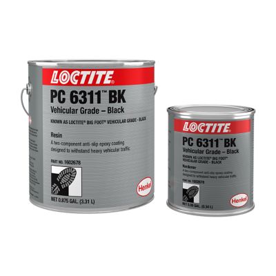 LOCTITE® PC 6311 is a 2-part, non-slip epoxy coating designed to withstand heavy vehicular traffic under dry service temperatures of -30 °C to 60 °C (-20°F to 140 °F). It is both easy and fast to apply. Typical applications include a non-slip finish for concrete and steel ramps, walkways, locker rooms, loading docks, marine applications, machine rooms, assembly areas and stairs.