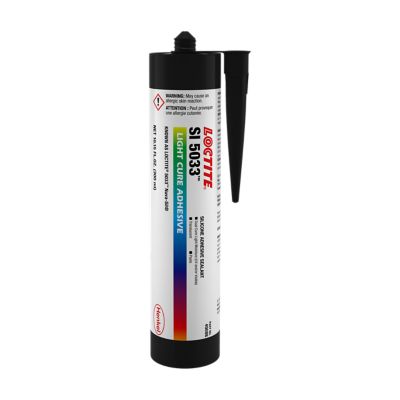 LOCTITE® SI 5033 is a light yellow, translucent, fluorescent, thixotropic, non-sagging, acetoxy dual-cure silicone sealant paste with deep light cure capability, UV and visible, combined with a secondary moisture cure mechanism for shadow curing. Upon exposure to sufficient UV light, visible light or atmospheric moisture, it forms a high strength rubber for gasketing and sealing applications.