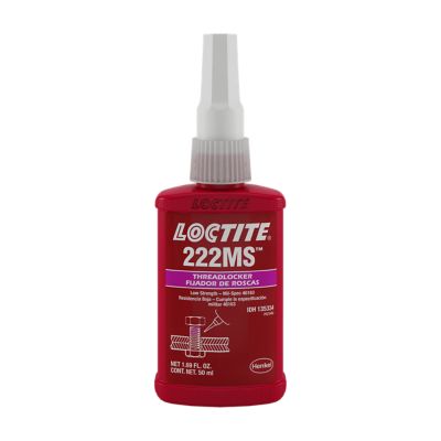 LOCTITE® 222MS est un frein-filet de faible résistance, violet, idéal pour les fixations d’un diamètre jusqu’à 6,35 mm (1/4 po). Sa lubrification contrôlée permet d’obtenir une tension de serrage précise. Les pièces peuvent être facilement démontées à l’aide d’outils manuels courants. Les applications incluent les vis de réglage, les vis à tête fraisée et les vis sans tête utilisées sur des colliers, poulies, porte-outils et dispositifs de commande. Son utilisation convient sur les métaux de faible résistance comme l’aluminium ou le laiton.