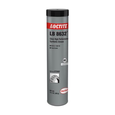 LOCTITE® LB 8632 is a white, opaque, advanced multi-purpose grease that is composed of synthetic PAO (polyalphaolefin) base stocks and a fumed silica thickener. It is ideal for use on food processing equipment as a lubricant and as a release agent on gaskets or seals. It also contains PTFE filler which provides excellent wear resistance under extreme loads.