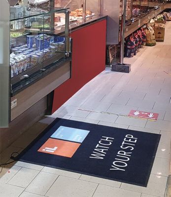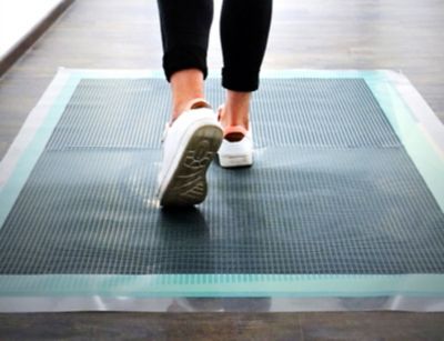 The smart mat has an intelligent sensor matrix embedded consisting of more than 8,000 individual sensors. This array allows the mat to differentiate between human steps and, for example, the wheels of a shopping cart. The latter was possible thanks to InnovationLab's capacity to print high-accuracy, sheet-to-sheet, and roll-to-roll electronics. This smart mat was placed in a German retail store and connected to an indicator that resembles a traffic light with the intent to keep social distance while people are queuing up. Whenever the smart mat sensed a person standing on it, the traffic light indicator would turn red. When there was no one on the mat, the indicator's light remained green inviting the next customer to move forward.