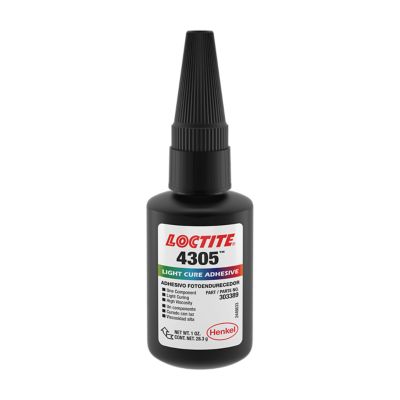 LOCTITE® 4305 es un cianoacrilato transparente, de color verde claro, de curado por la exposición a luz de baja intensidad en el espectro de la luz UV y visible, tiene la capacidad de curado secundario efectuada por la humedad de la superficie. Ofrece excelentes propiedades de adhesión a plásticos, y curado súper rápido; tiempo de tacto seco hasta 5 segundos y tiempo de fijación 2 segundos. Adecuado para la adhesión de cerámica y metales.