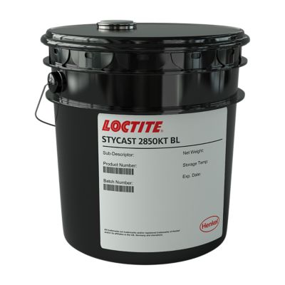 LOCTITE® STYCAST 2850KT BL is a low-viscosity, epoxy-based encapsulant with excellent adhesion and low-temperature properties. It is uniquely designed for heat sink replacement in non-integrated electrical components and assemblies, and can resist thermal shock and impact, making it ideal for high-voltage applications where surface arching or tracking is a concern. It is tested to perform seamlessly in applications with an operating range of -65°C to 105°C (-85°F to 221°F) and is compatible with a variety of LOCTITE catalysts.