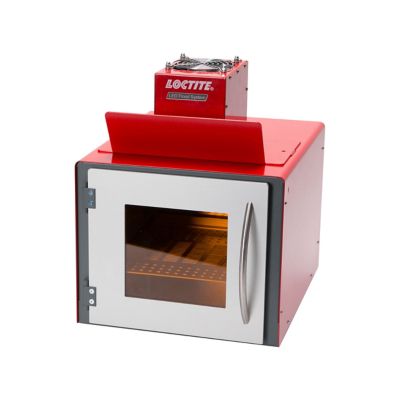 The LOCTITE® LED Flood Chamber is designed for use with LOCTITE® LED flood system EQ CL30 at manual workplaces. It consists of a chamber with adapter for one or two LED heads, workpiece holder, door locking and ESD safe door. It provides fully interlocked guarding of LED flood systems for operator safety.