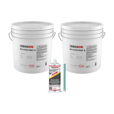 TEROSON® PU 6700 is a 2-part polyurethane adhesive for bonding a wide variety of substrates, such as stainless steel, aluminium and other metals, plastics, wood and painted surfaces (not recommended for PP and PE). It can be spot-welded and cures fast, regardless of environmental conditions. It has a tack-free time of 30 minutes and can be applied easily with the TEROSON® HAND GUN (2x25 ml cartridges) and an appropriate static mixer. Recommended surface preparation with TEROSON® VR 10.