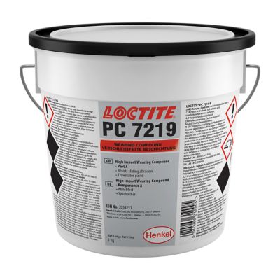 LOCTITE® PC 7219 is a 2-part, grey, ceramic-filled, rubber-modified, trowelable, epoxy-based surface coating designed to protect parts from coarse particle abrasion or erosion on metals (with or without chemical attack). It is designed for components subject to high impact with a service temperature range from -30 to +120°C. Typical applications include lining and protection of flumes, troughs, dredge pump liners, pump impellers, vibrating feeders, elbows, hoppers, discharge chutes and other processing equipment that is exposed to both abrasion and impact.