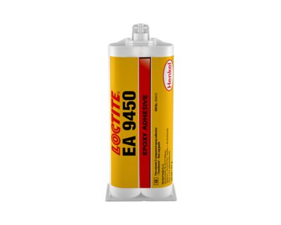 LOCTITE® EA 9450 is a translucent epoxy adhesive (resin and hardener) suitable for a wide variety of substrates, including metals, ceramics, glass, and most plastics. It's typically used for component assembly, domestic appliances, electronics and fiber optics, and general industrial repairs. It's ideal for gap filling and, due to its non-sagging characteristics, vertical surfaces to avoid run-off. It cures fast at room temperature, leaving slightly flexible, clear bond lines.