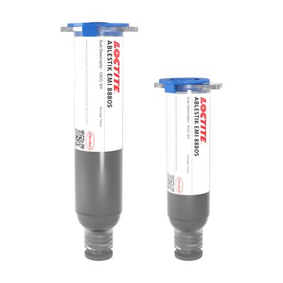 For excellent EMI-shielding performance with extremely thin, sprayable coating thickness, try LOCTITE® ABLESTIK EMI 8880S. This electrically conductive adhesive has robust adhesion to mold compound, epoxy, copper, gold and silver surfaces and, when spray-coated, can be atomized to very fine droplets for excellent uniformity at low to high coating thicknesses (controllable by equipment parameters).