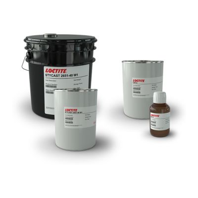 LOCTITE® STYCAST 2651-40 W1 with CAT 9 low-viscosity epoxy encapsulant is perfect for general purpose applications. It can be color coded, has room temperature cure capability, and excellent adhesion to a wide variety of substrates. When fully cured, it can be readily machined with carbide tools.