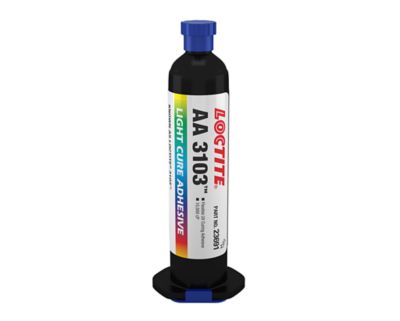 LOCTITE® AA 3103 is a light-cure acrylic-based adhesive formulated to provide flexible bonds when joining stress-sensitive plastics. It offers a depth of cure of >13 mm (>0.51”) and a fixture time of 12 seconds. It is ideal for the bonding of plastics and metals, but can also be used on glass and ceramic materials. It is thixotropic to reduce adhesive migration after application.